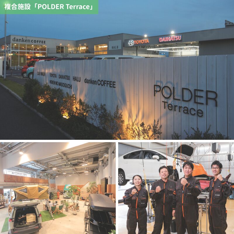 「誰もが気軽に立ち寄れる場所を」と鹿児島市東開町にオープンしたポルダーテラスは、洗車をしている間にカフェやアウトドアショップで快適かつ充実した時間を過ごせる複合施設。降灰が気になる土地柄、手軽に洗車できると好評です。オープン以来、愛車の洗車や買い物など、多くの人が思い思いの時間を過ごしています。開放的な店内には話題の新型車が展示され、カフェメニューを味わいながらゆっくり眺めることも可能。よりカジュアルに車に触れあえる点が魅力で、いわばアンテナショップのような楽しみ方ができる憩いのスポットです。
