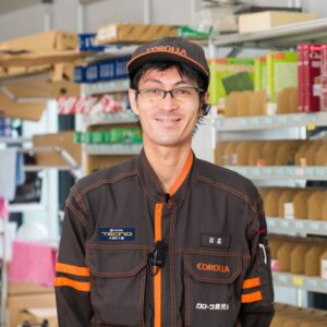 母がトヨタカローラ谷山店を利用しており、子どもの頃から担当営業の人柄に憧れを抱いていました。車も人と話すことも好きだったことから、当社の営業職を志望しました。担当のお客様と少しずつ信頼関係を築き、「あなたじゃなきゃ」と言っていただける瞬間に、大きなやりがいを感じます。普段は雑談を交えた関係づくりや、点検のご案内を先回りして行うことを心がけています。