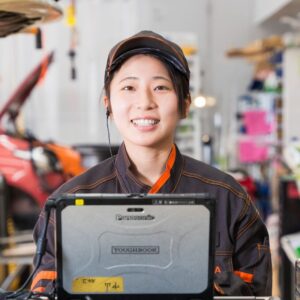営業スタッフの主な業務は、点検・車検・修理から、新車・中古車の販売、保険のご提案まで多岐にわたります。私は特にアフターフォローを大切にしており、故障や事故といったトラブルの際には、お客様の不安を少しでも和らげられるよう寄り添うこと、そして「困った時に頼れる存在」であることを心がけています。お客様と長くお付き合いができる点や、会社の温かい雰囲気に魅力を感じ、当社への入社を決めました。