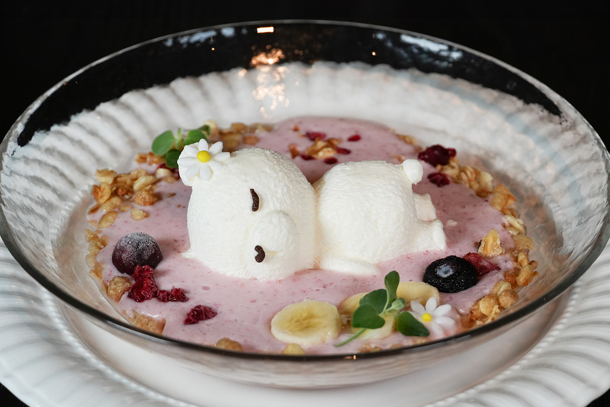 「おひるねくまちゃん」以外にも、人気の台湾カステラにたっぷりのフルーツと、ミルクプリンでできたくまちゃんが散りばめられた「おぼれ台湾カステラ with くまちゃん」(1280円)もとにかくキュートなので、そちらもぜひ注文してみて。